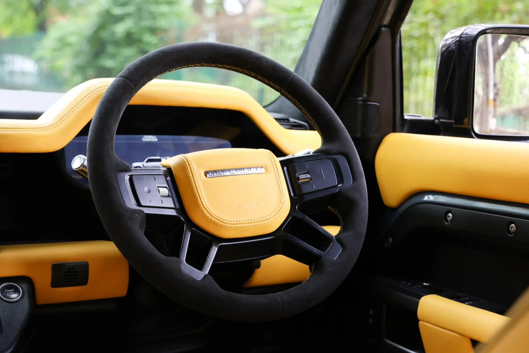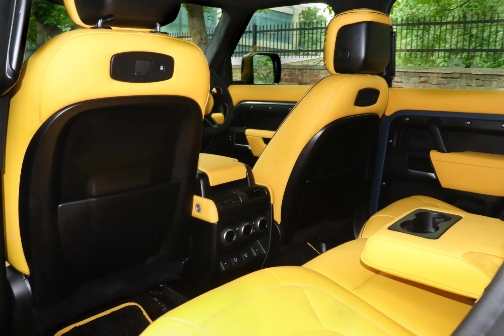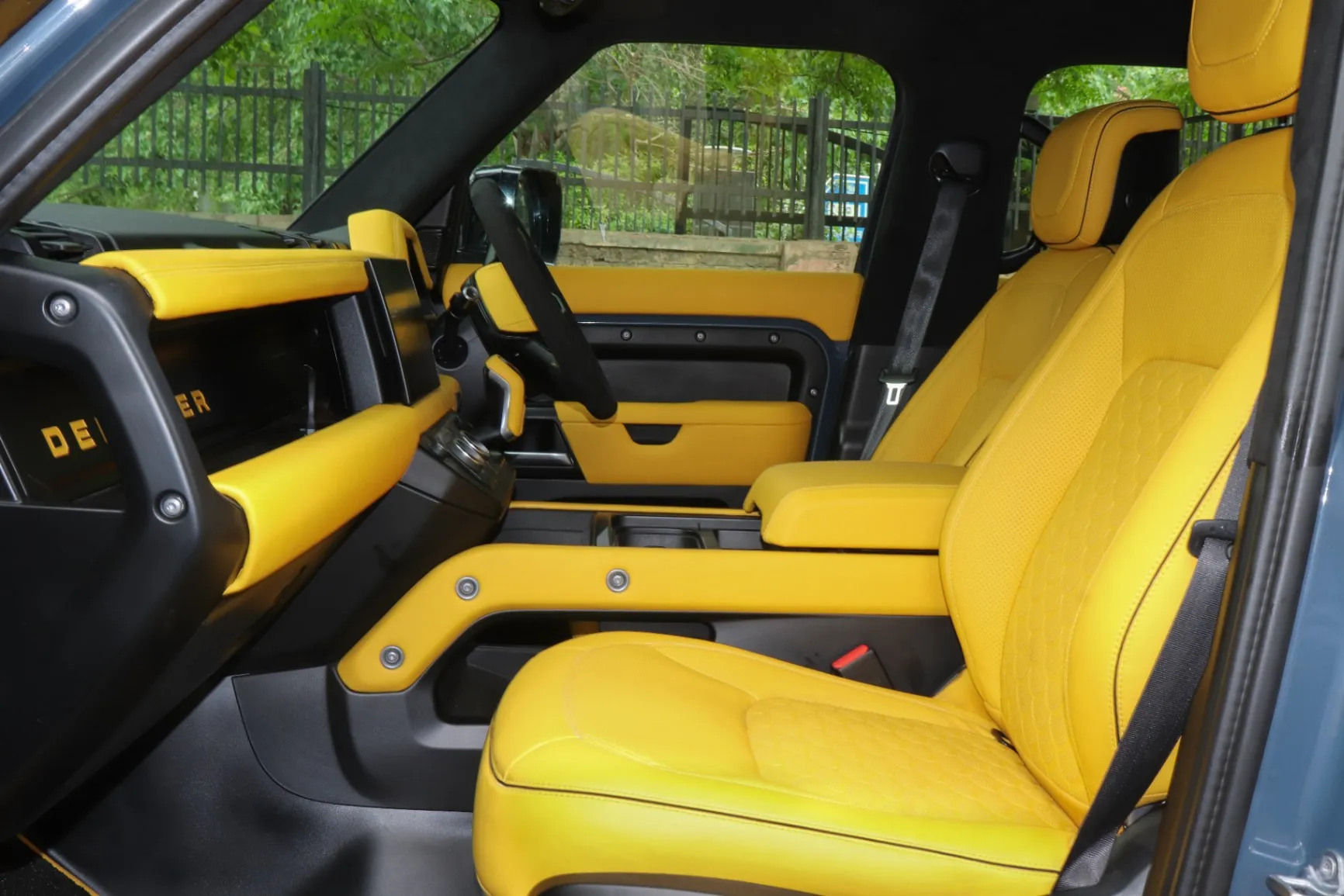From custom seats and dashboards to door panels, center consoles, headliners, and floor mats, each element is finished with precision and attention to detail—resulting in a cohesive, high-end interior that complements the Defender’s bold DNA.